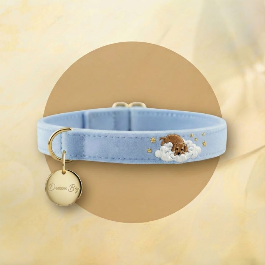 Gold-accented charms inspire with a 'Dream Big' message, adding elegance to your dog's beauty and daily style.